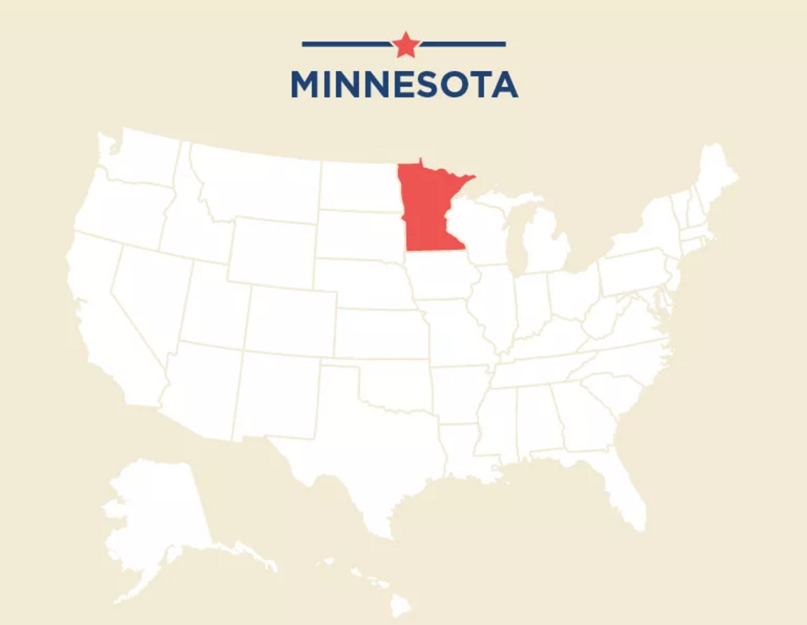 明尼苏达州北接加拿大的曼尼托巴省和安大略省,东临苏必利尔湖,隔密西西比河与威斯康星州相望,南接艾奥瓦州,西邻南、北达科他州。美国大陆的极北点(北纬49度23分)就在该州,因此明尼苏达州的别称为北星之州。面积21.9万平方公里,在50州内列第12位。人口5167101(2006年)。首府为圣保罗。