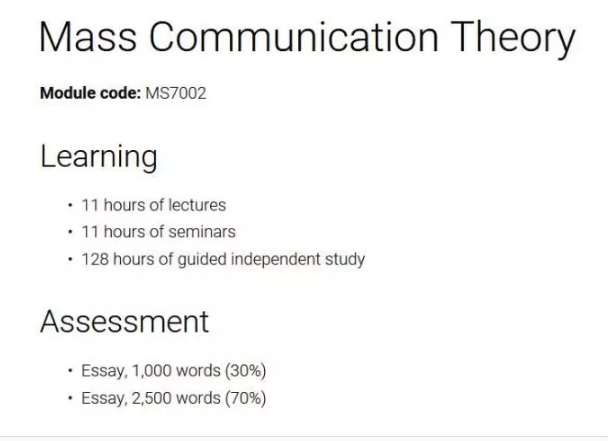 本课程会通过11小时的lectures,11小时的seminars,1小时的项目辅导,以及127小时伴随辅导的自主性学习完成。