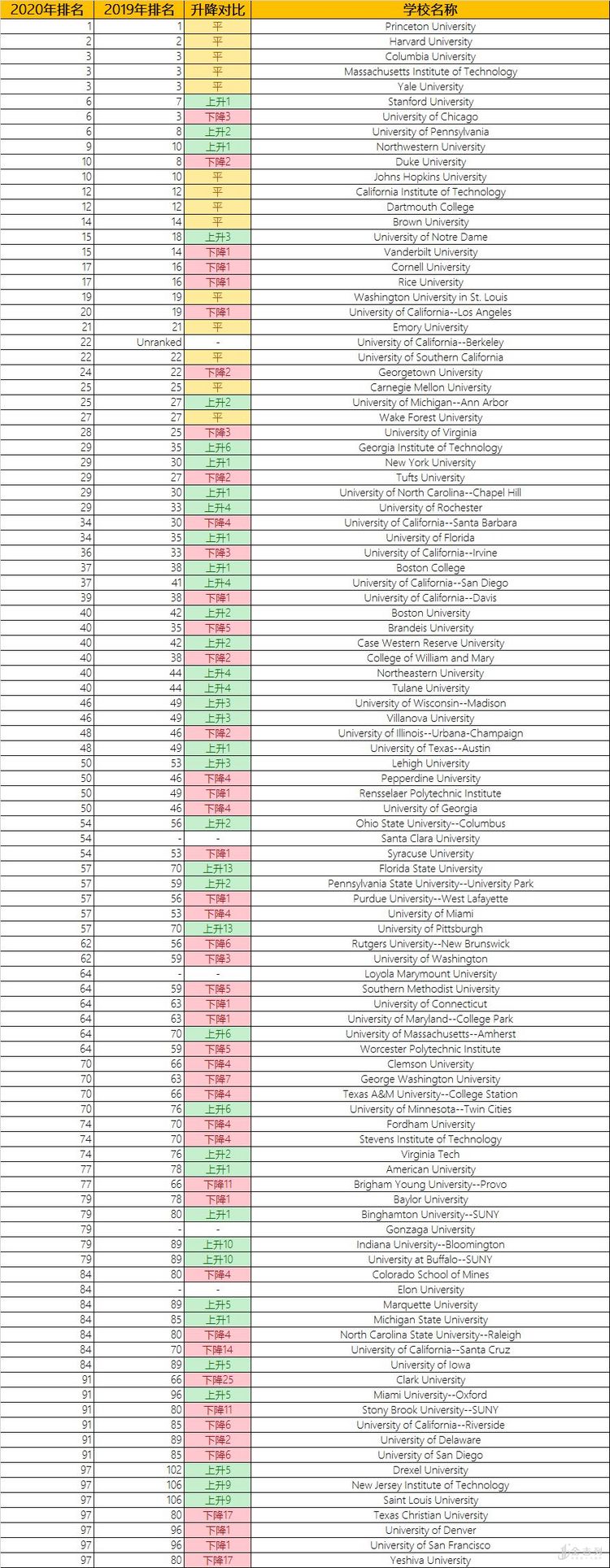U.S.News在9月9日发布了2020年综合院校的排名。今天我们来分析一下2020年的院校排名变化情况。
