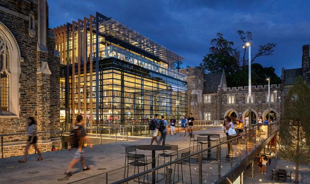 杜克大学校园别有风味,美丽的校园景观让人流连忘返。以杜克的校园建筑来说,整个东校园保持着乔治亚式古典建筑,而较新的西校园则全是哥特式风格。城堡似的古典建筑外型非常古典精致,所有建材是采用美东南地区的坚固花岗岩,没有任何两栋相雷同。校园古典而精致,漫步在秀丽的杜克森林中,感觉就像来到了世外桃源。一百七十栋古典建筑,仿佛一一隐藏在秀丽的山林中一般,杜克校园面积之大在私立大学中只有斯坦福可以媲美。美国南部地域广阔,气候温暖而舒适。