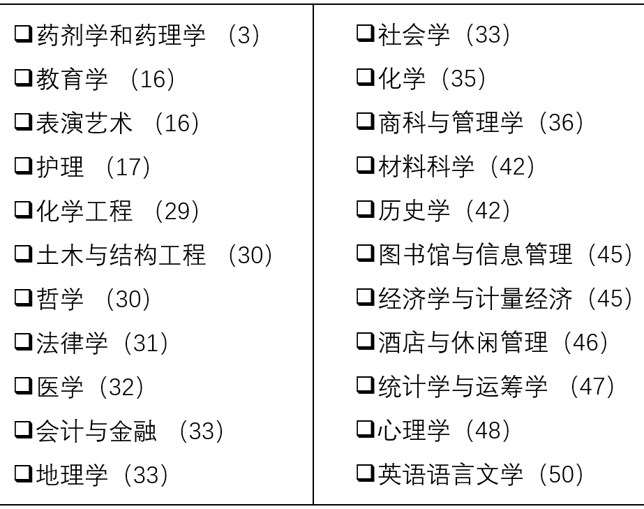 此外,蒙纳士十大学院中有25个学科排名世界前50,其中受国际学生欢迎的学科主要包括: