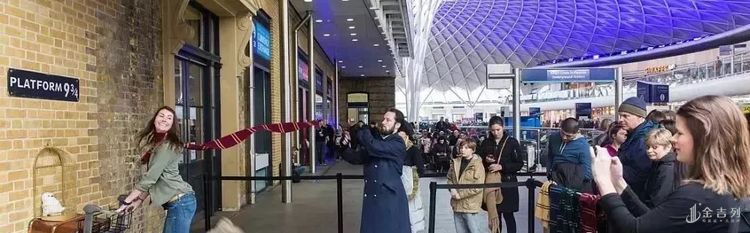 小说《哈利波特》系列改编成电影版,电影中经典场景变成旅游大热景点:伦敦Kings cross火车站里的 “九又四分之三”站台;