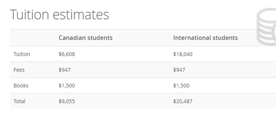 学费:20487加币