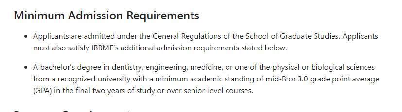Dentistry(牙科学), engineering(工程), meicine(医学), or one of the physical or biological sciences(物理或生物科学),以上专业的本科学士学位;