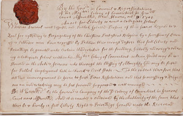 “大学学院” 由康涅狄格州殖民地特许成立,由神职人员于1701年成立,旨在教育公职大臣。它于1716年搬到纽黑文(New Haven),不久后因受到英国东印度公司州长埃里胡•耶鲁(Elihu Yale)的礼物而改名耶鲁大学。该课程最初限于神学和神圣的语言,到美国大革命时开始融合人文和科学。在19世纪,该大学扩展为研究生和专业指导,并授予第一位博士学位。1861年在美国成立,1887年成立大学。1890年以后,随着物理校园和科学研究的迅速扩展,其教职员工和学生人数不断增长。