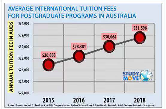 需要注意的是,澳洲的学费根据地区不同,学校以及专业不同,逐年都在变化中,特别是大学学费,呈现逐年上涨趋势,去年,新州大学个别专业的年学费已经突破4.5万澳币一年。