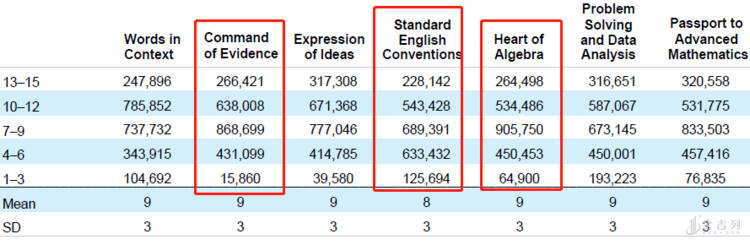 了解了整体分数的概况,你可能就知道SAT1500+虽然频频刷屏,但在数量上可能并不多,而是被机构渲染的多了,实际上大多数人都不到1500。但如果要冲刺TOP30名校的话,1500+还是有必要拿到的。