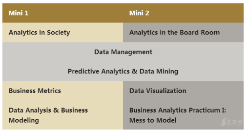 秋季分为两个mini moules课程侧重让学生掌握如何分析数据,商业分析和机构绩效之间的重要关系, 包括如何使用统计工具进行数据分析,如何管理数据、如何用数据作预测、如何进行数据可视化等。