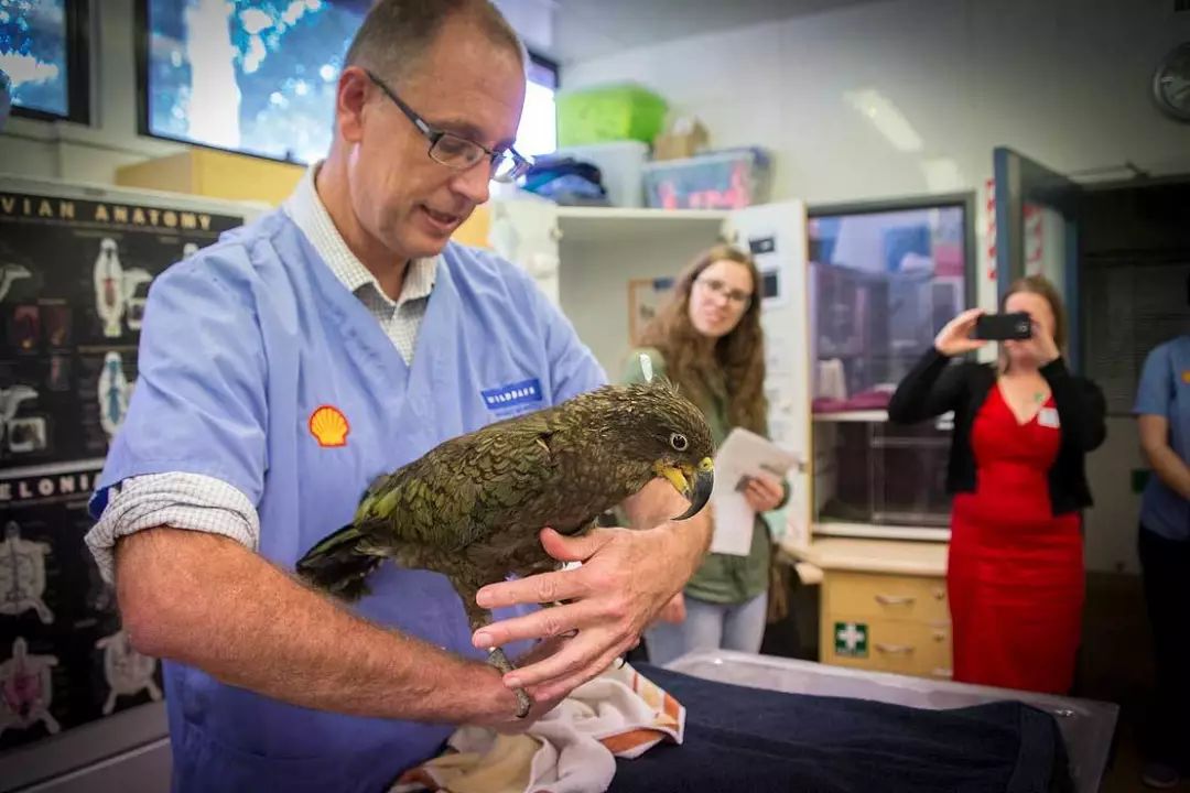 手术对象是一只刚刚出生56天的鸮鹦鹉(kākāpō)