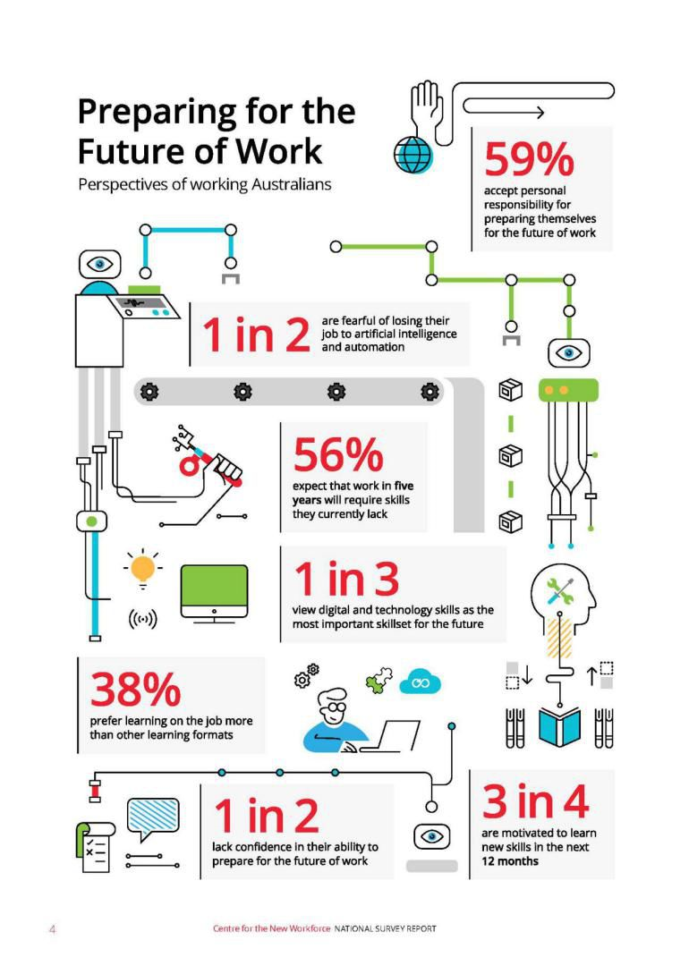 澳大利亚的劳动力,乃至整个经济,正处于巨变的边缘。随着人工智能(AI)、机器学习、高科技机器人和物联网等数字技术以不断加快的速度浸入和取代人类劳动力,今后的劳动者都面临着就业保障方面的不确定性。