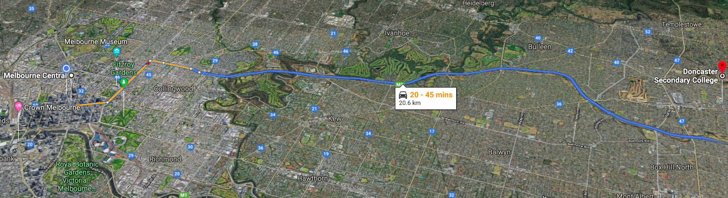当卡斯特中学(Doncaster Seconary College)是墨尔本的一所大型的公立中学,当前约为1400多名在读的学生。该学校位于墨尔本以东15公里左右的Doncaster区, 公共交通十分完善便利 。学校附近有多个大型购物中心和体育馆, 安全舒适的环境和便利的生活 使这个区已然成为了亚洲家庭移民的首选地区之一。