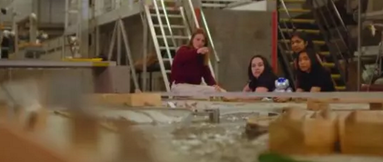 说到我们的教学设施,你会在视频中看到学生们围坐在一条模型河的周围。这里取景于NewMarke校区的水工程实验室(就像FSAE方程式车间一样)。该设施有羽流,主要用于我们土木和环境工程系的成员研究河流、海岸线及其水动力特性。