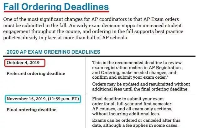 也就是说,要参加2020 年 5 月 AP 考试的同学,需要按照这个节点进行报名和缴费了: