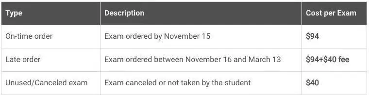 AP考试费用考试费用11月15日之前,国际考生每个科目94美元 ;