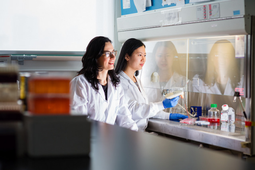 IBBME教授Molly Shoichet(左)和Penney Gilbert是著名的干细胞研究人员,他们在“ T型医学的设计”倡议中起着关键作用。