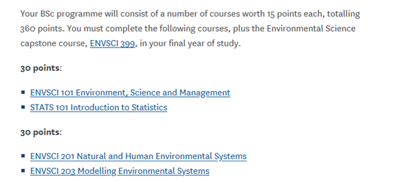 奥克兰大学环境科学是一个学制3年,总计360学分的专业,主要的课程包括以下这一些: