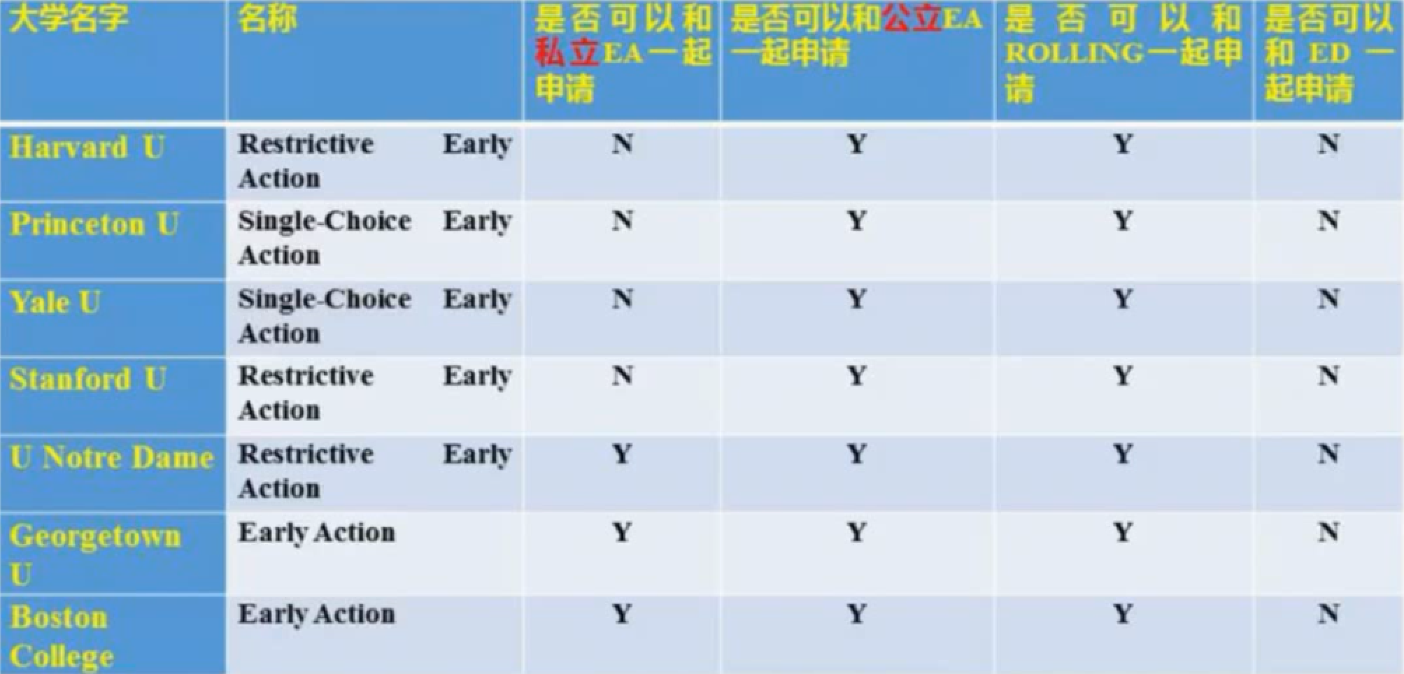后面三所学校:圣母大学、乔治城、波士顿学院,他们的EA无论是叫REA还是EA,没有公私立学校的限制,都只是限制其他学校的ED申请。
