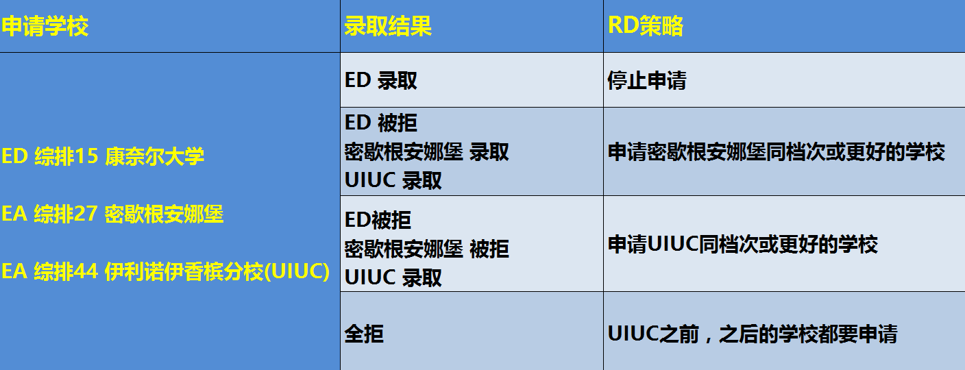 ED申请综排15康奈尔大学,EA申请综排27密歇根安娜堡,EA申请综排44的UIUC。