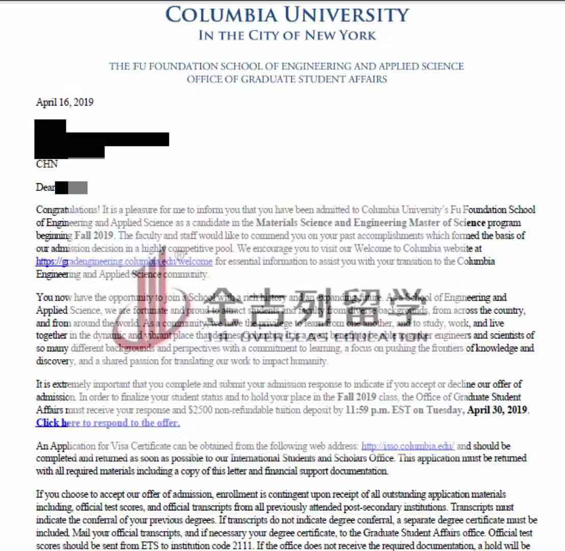 获得 offer 院校:哥伦比亚大学