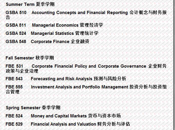 要求:获得硕士学位要求完成32学分时,不必是金融专业,要有一定的定量基础。