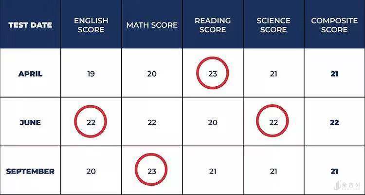 选取考生的四科最高分:英语22,数学23,阅读23,科学22