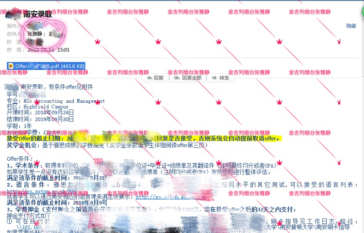 给大家提个醒,务必要早点递交呀,因为雅静老师夜观天象如果早点递交可能就被格拉斯哥的MAcc给录取啦!