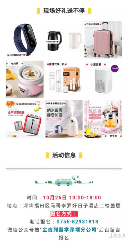 10__月26日,在深圳马哥孛罗好日子酒店,金吉列留学为各位家长同学们准备了一场全天的国际教育盛宴!