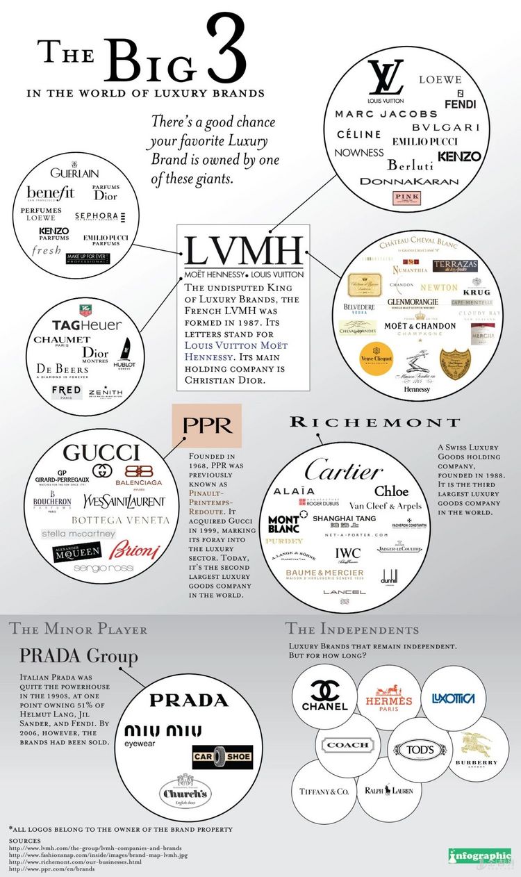 奢侈品“三巨头”: LVMH, 开云 (Kering, 曾名 PPR), 历峰