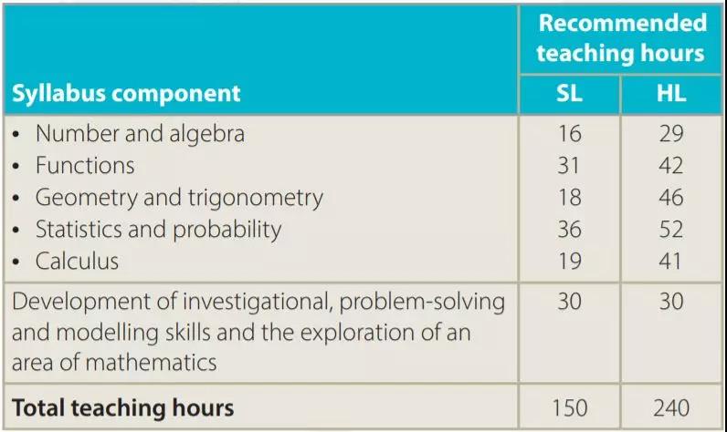 《数学:分析和方法》(HL&SL)主要侧重于数学中的微积分,现有数学HL课程中涉及微积分的内容仍将是新课程中的一部分,适合于未来打算选择纯数,工程,科学和经济为自己专业的学生。在新的大纲中也给出了教学各部分的教学实践,SL教学实践需要达到150学时,而HL需要满足240学时。