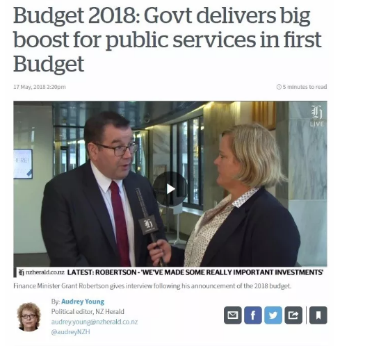 财政部长 Grant Robertson 在5月17号通过媒体采访是表示:“2018年的财政预算中有16亿纽币会投入到 早期儿童教育及有高等教育需求的学生 ”