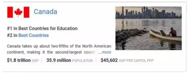 此外,作为全球最权威和最有影响力的教育类排名,美国的U.S.News在2017年上半年公布的“全球教育质量国家排名”中,将世界第一的殊荣,颁给了邻国加拿大。