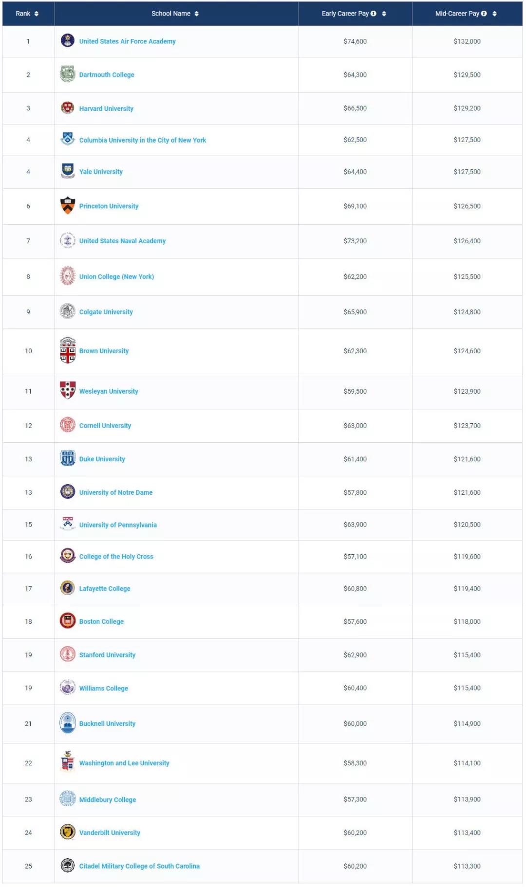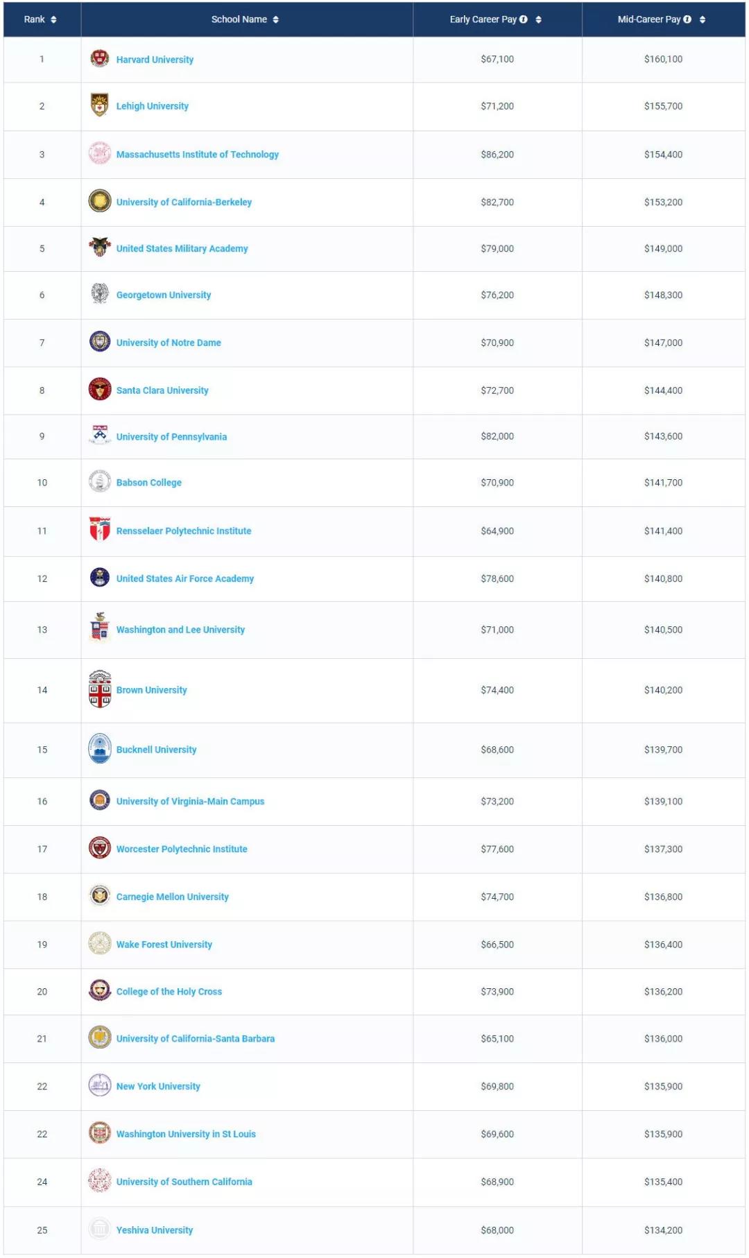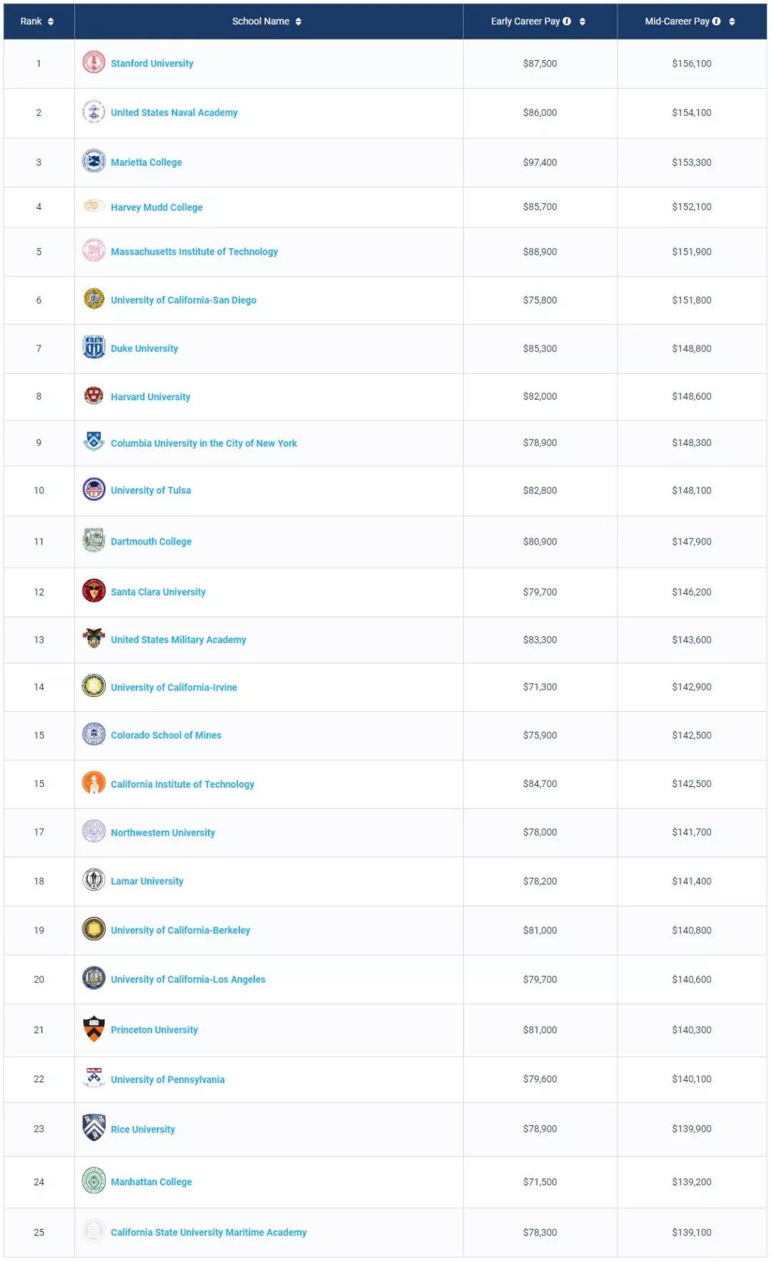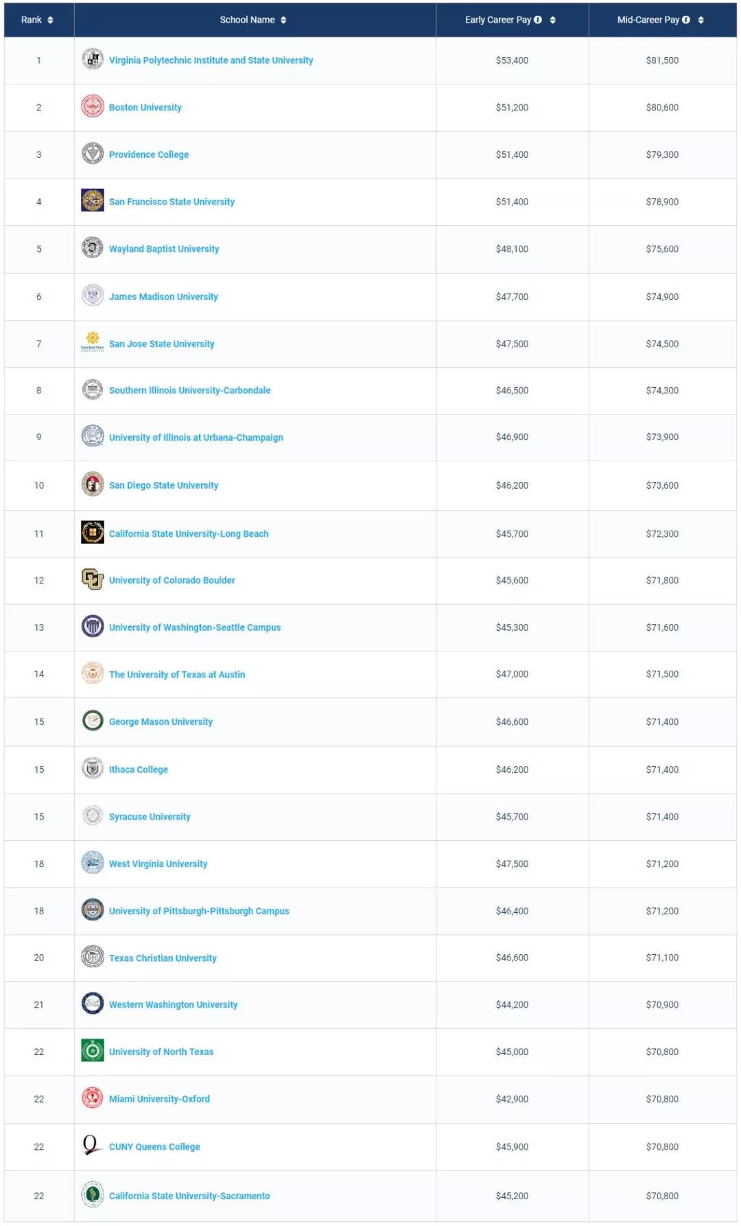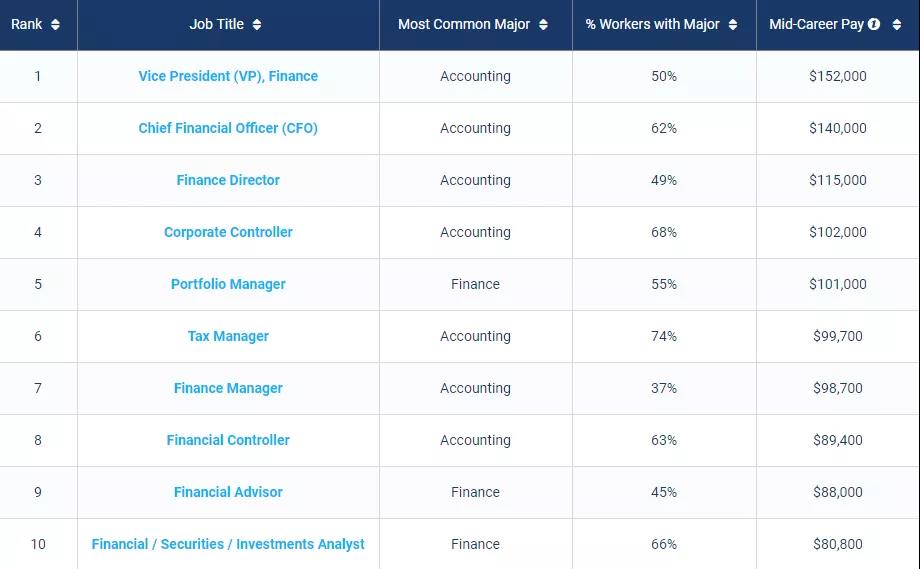 1. 商科类Best Schools For Business Majors by Salary Potential