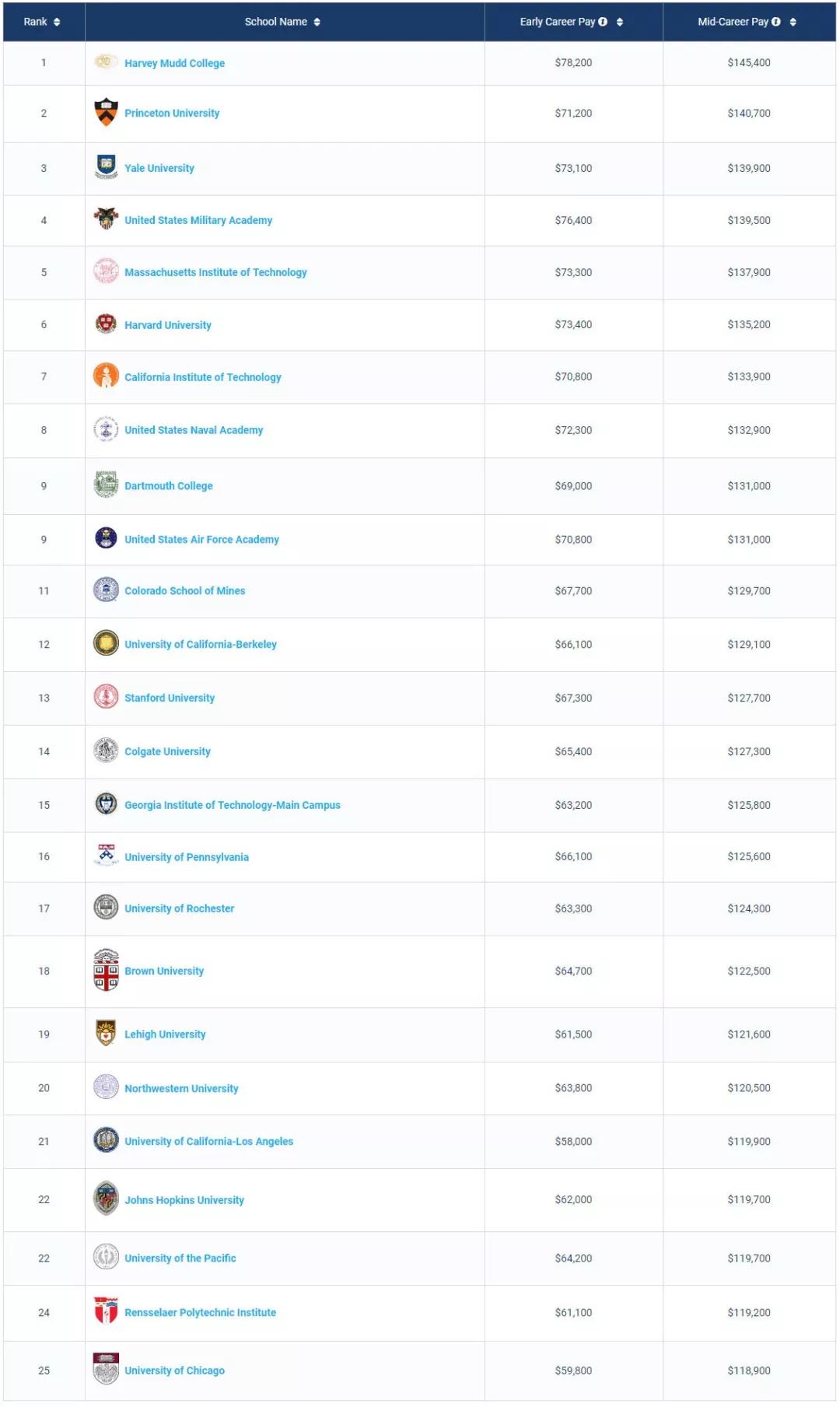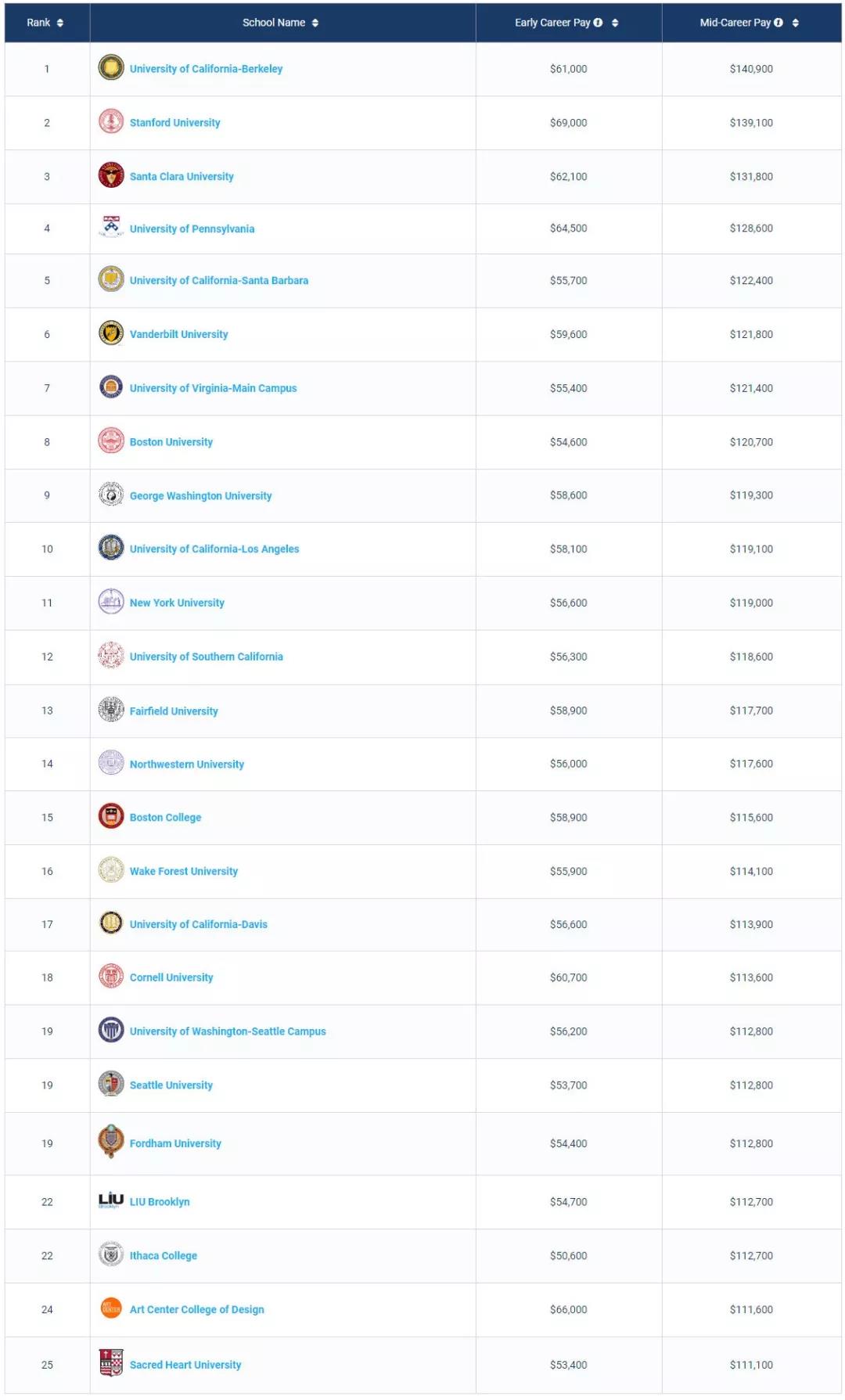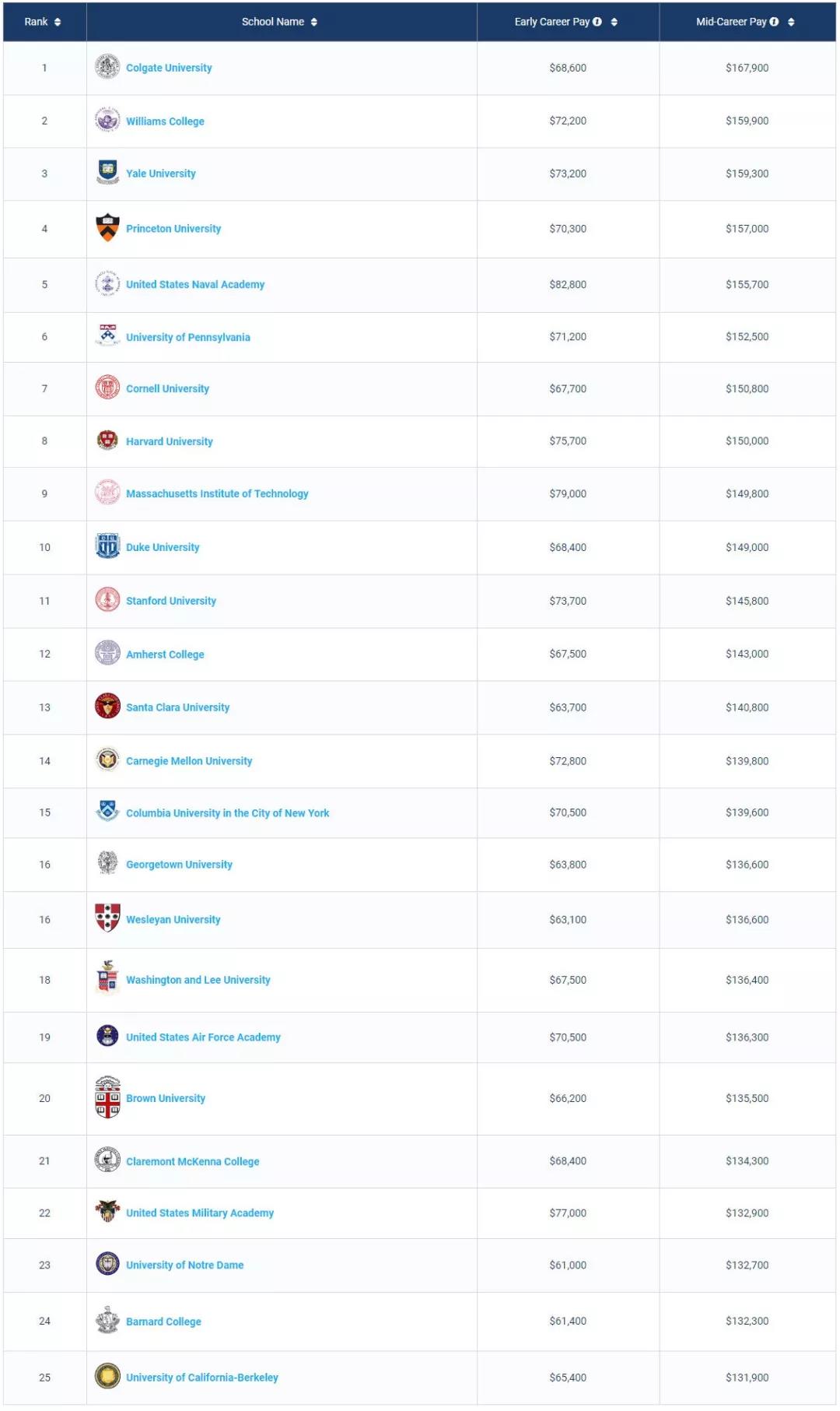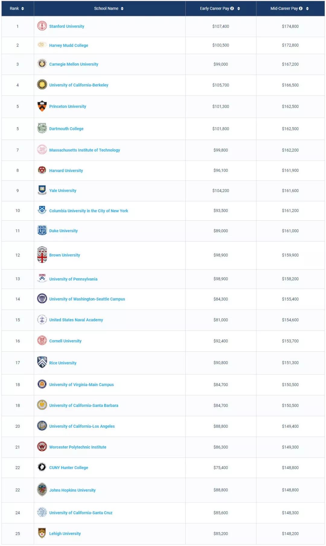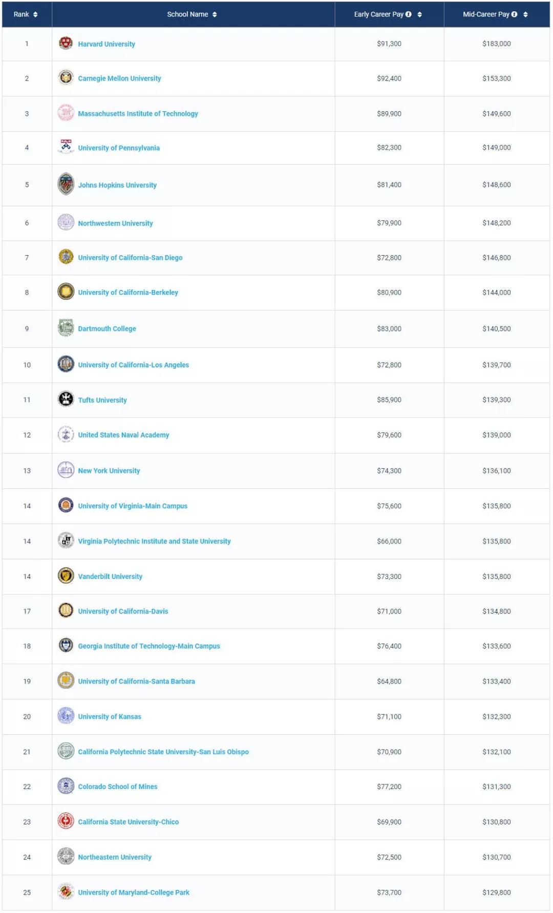1. 商科类Best Schools For Business Majors by Salary Potential