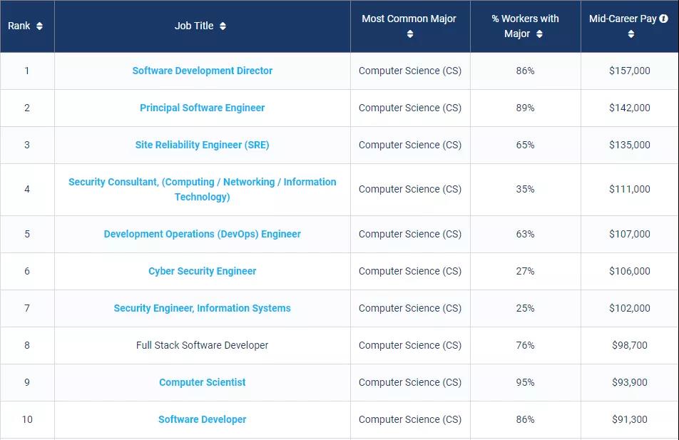 2. 计算机科学类Best Schools For Computer Science Majors by Salary Potential