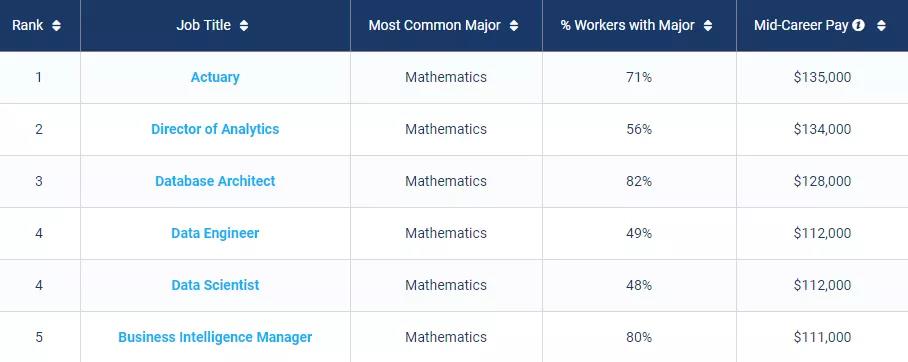 4.数学类专业Best Schools For Math Majors by Salary Potential
