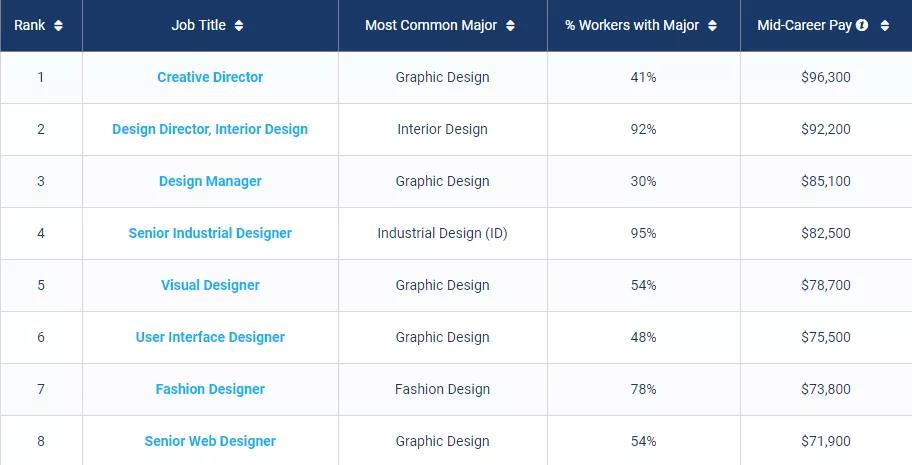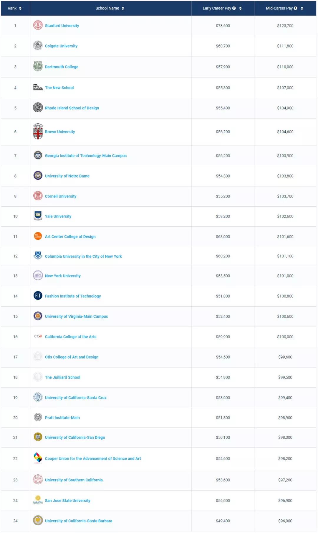 艺术类Best Schools For Art Majors by Salary Potential