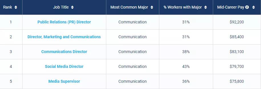 通信/新闻类Best Schools For Communications Majors by Salary Potential