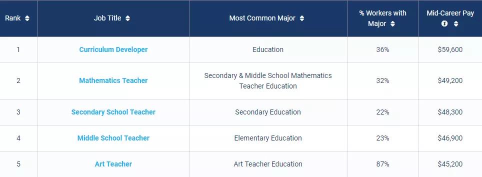 教育类Best Schools For Eucation Majors by Salary Potential
