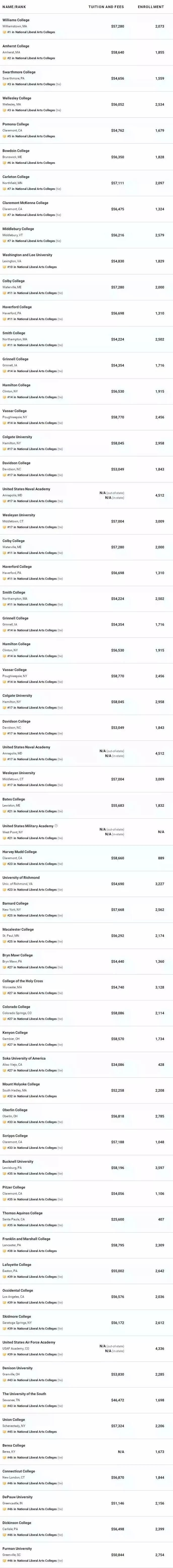 在对文理学院有了初步了解之后,我们就一起来看看最新出炉的2020US News文理学院排名吧。