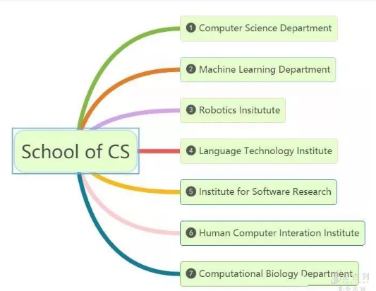 CS作为CMU的王牌专业,它拥有着一个庞大的学院(School of Computer Science),下分七大研究教学机构,覆盖了计算机科学的所有研究方向。