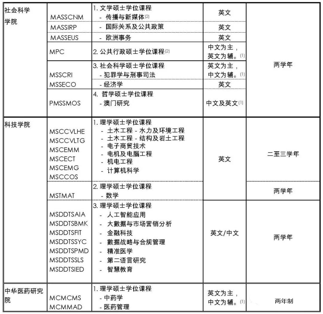 我们先来看看,澳门大学有哪些专业的硕士与博士课程可以申请!