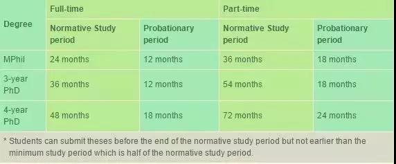 注 : 2年制的MPhil学位的学生有机会转成博士的机会(获得候选资格并满足课程要求);PHD学生也有机会在项目初期有效期内转读MPhil。