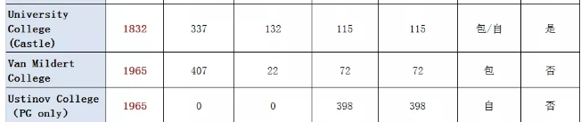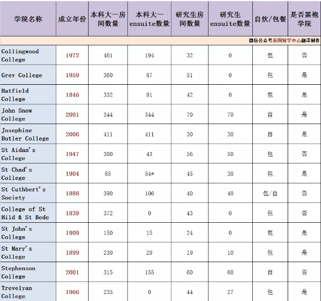 关于各个学院是否包餐,是否黑袍学院,是否有ensuite房型(单人间带独立卫浴),大家可以参考下面这个表格。