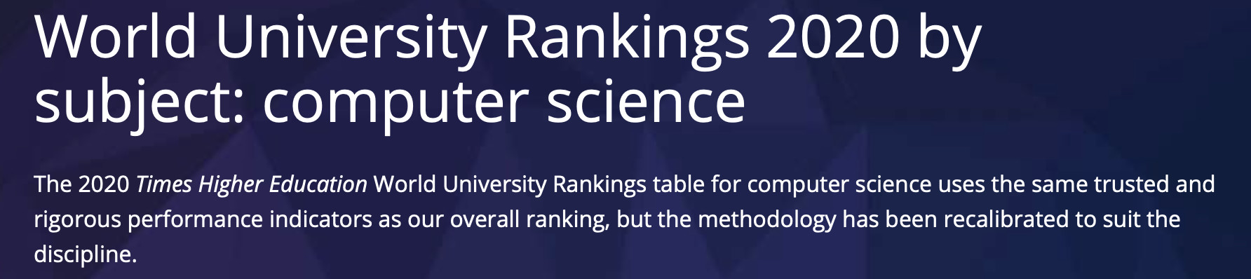 2020年泰晤士高等教育世界大学最新学科排名将阿德莱德大学 计算机科学 专业评为 全球第96位* 。
