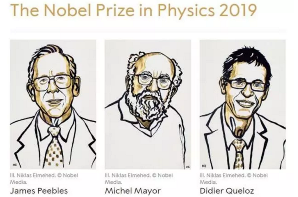 James Peebles(毕业于普林斯顿大学,获理学博士学位)Michel Mayor(毕业于日内瓦大学,获天文学博士)Diier Queloz(毕业于日内瓦大学,获天体物理学博士)