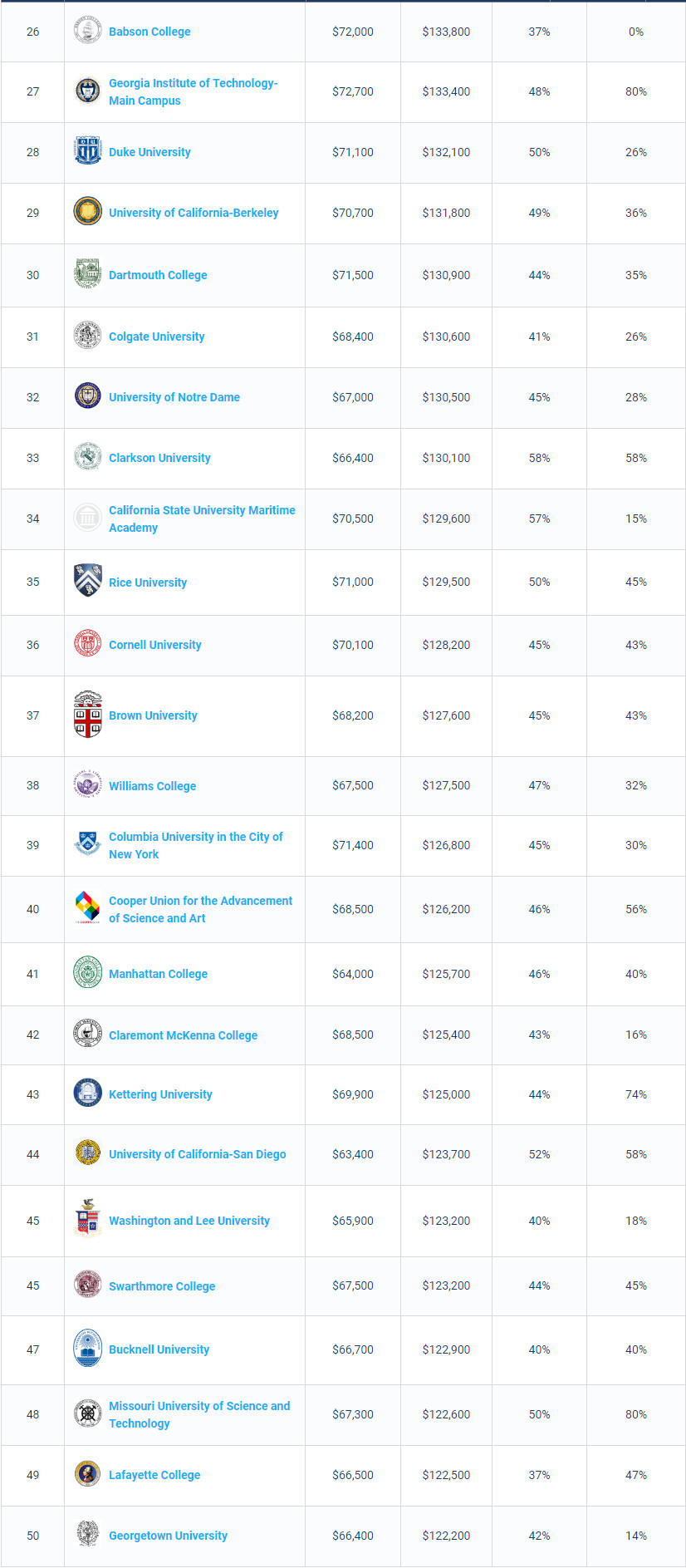 近期,PayScale发布了最新的2019-20年度大学生薪酬报告,通过调查近三千所大学或学院毕业生薪资水平,直观地为大家选专业或择校提供一个重要参考。本文总结了美国毕业生薪酬最高的院校排名TOP50、美国毕业生薪酬最高的本科专业TOP50
