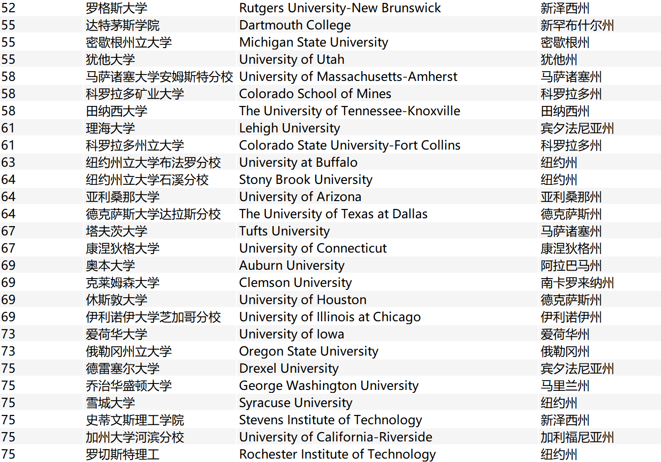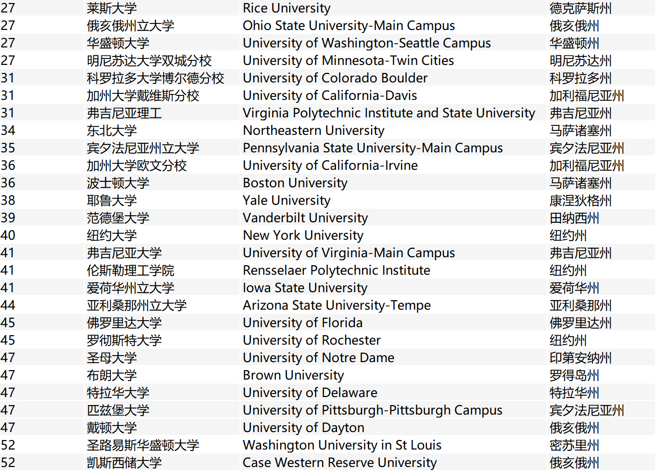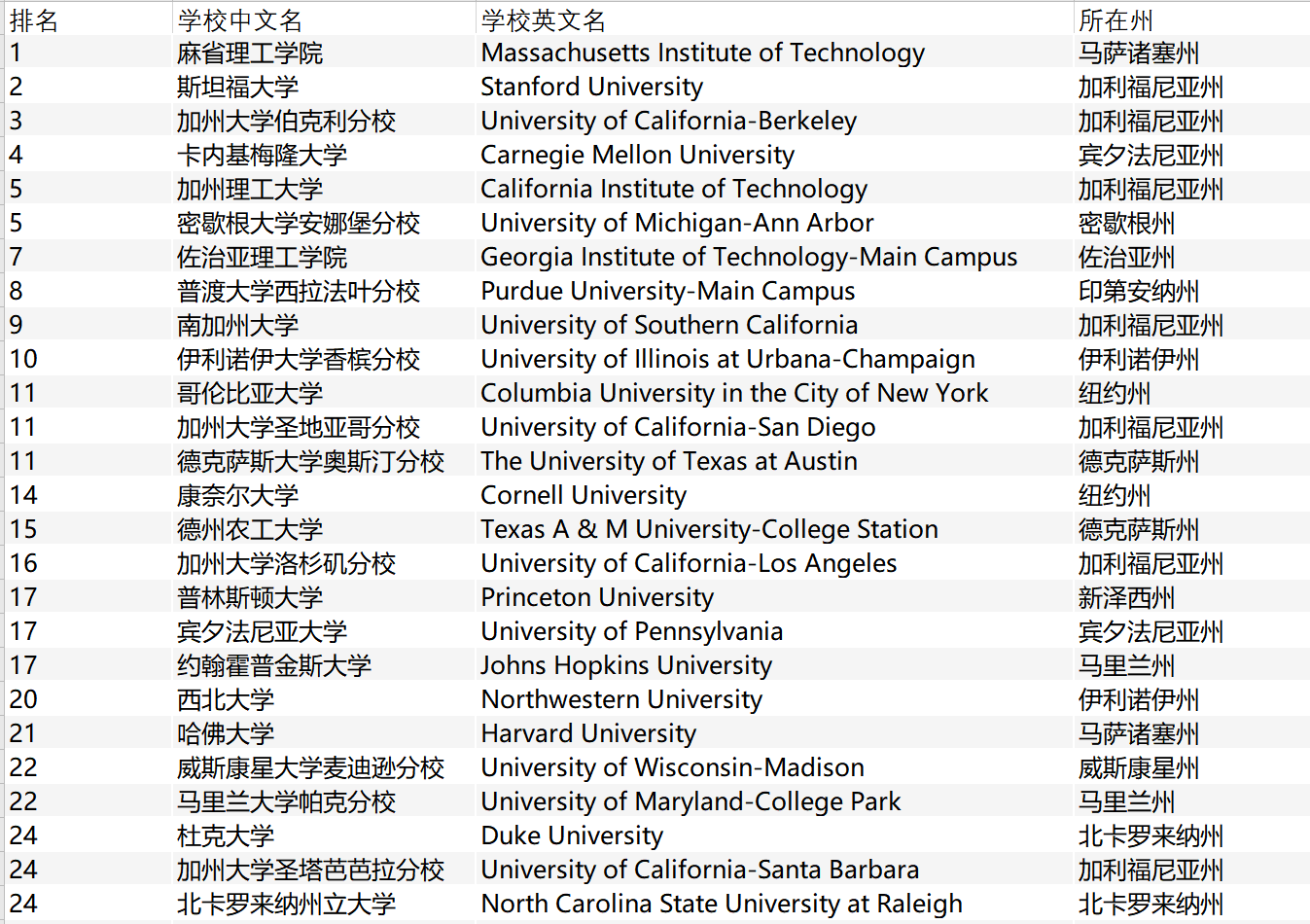 > 2020最新USNews美国大学工程学院排名