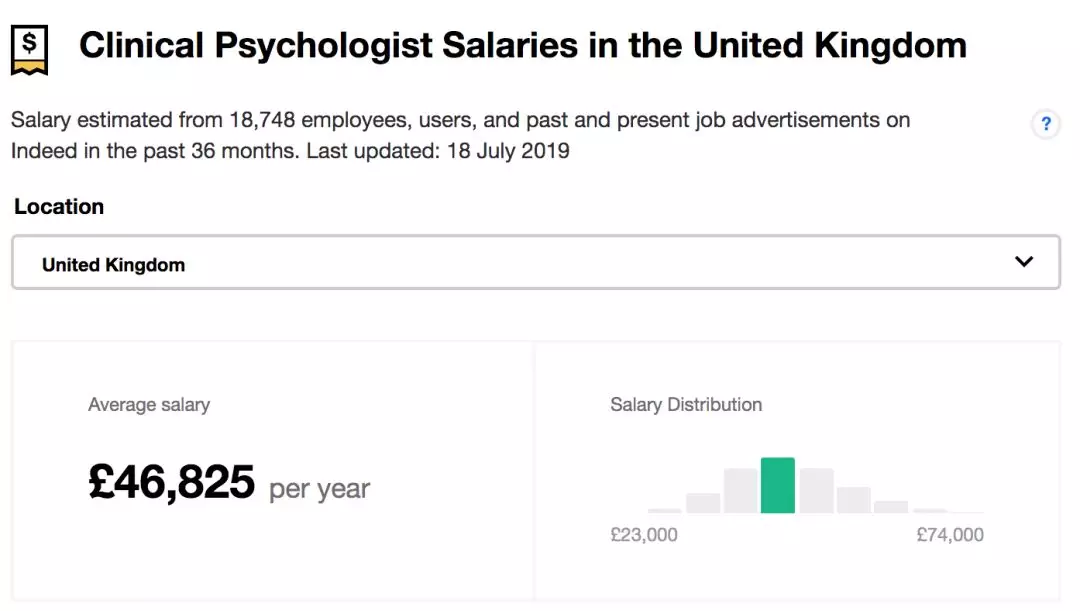 知名职业网站Inee最新统计,临床心理学家年薪£46,825,远高全英平均。