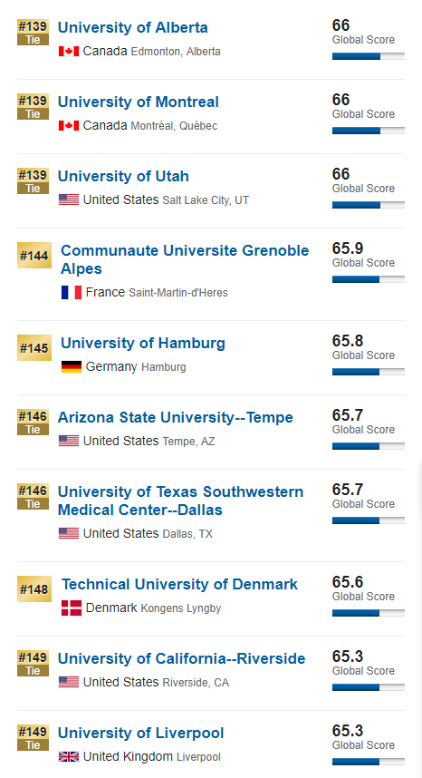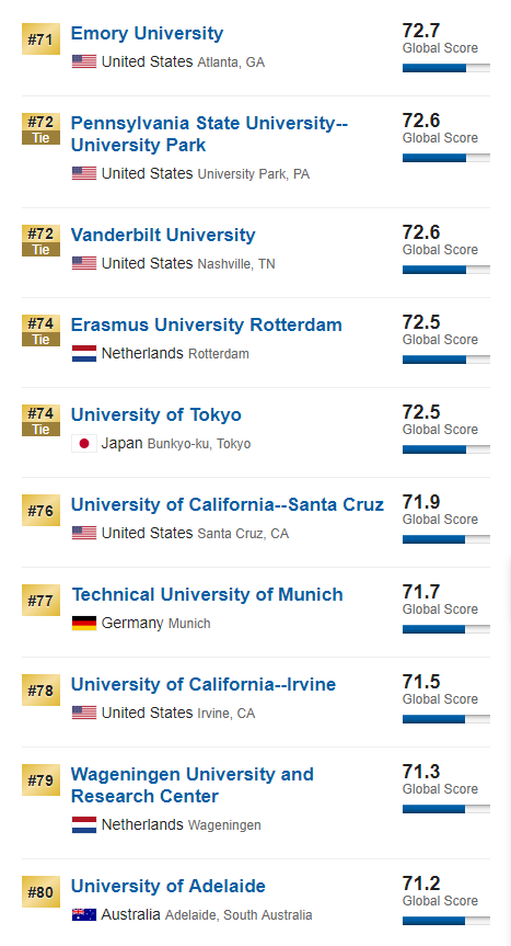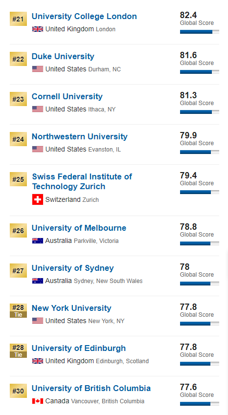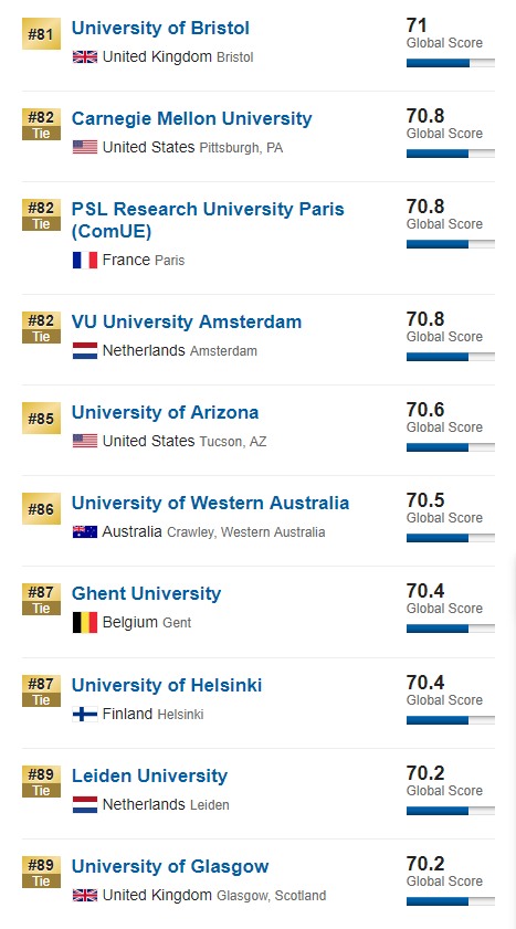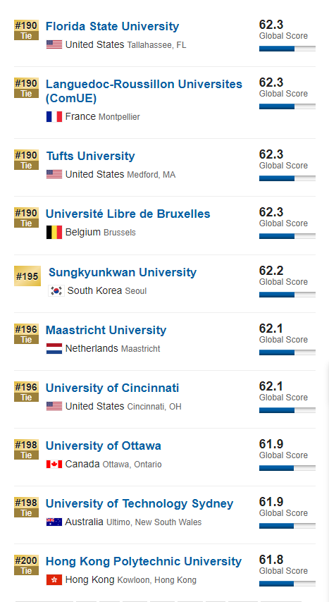 2020年US News世界大学排名涵盖了分布在81个国家/地区的前1,500家院校,而去年是1250所,多于去年75个国家/地区。 US News排名不单独考量学校的本科或研究生教育,而是根据13项指标进行排名,这些指标衡量学校的整体学术研究表现以及其全球和地区声誉。