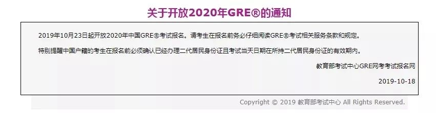 ETS最新消息: 从今天开始,也就从2019年10月23日起,GRE将开放2020年考试报名!